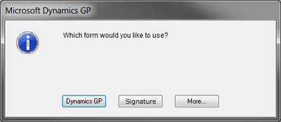 If you have access to more than three alternate or modified alternate form or report, a window will display the third button in the message window will be labeled More... When you select More..., the 3rd and subsequent options will be displayed in another message box.