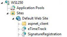 - Locate the virtual directory called SignatureRegistration, as shown below.