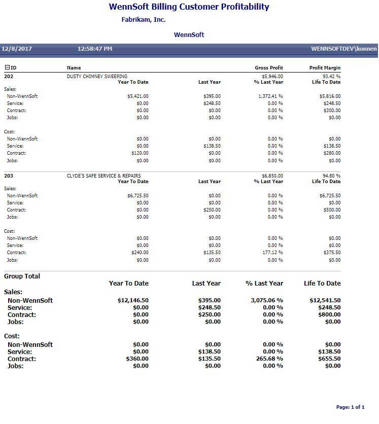 WennSoft Billing Customer Profitability