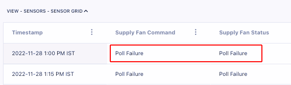 The Sensor Grid now displays a "Poll Failure" status when IoT data is received as a poll failure indication from the agent. K2AINT-4205