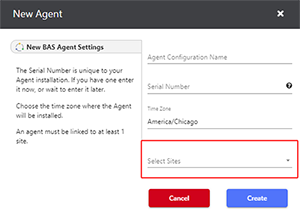 When creating a BAS agent in the IoT Hub, you are now required to link one or more sites with the agent. This is for future development. K2AINT-4268