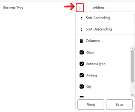 You can now show or hide columns and set the sort by selecting the new ellipsis icon from any column header.