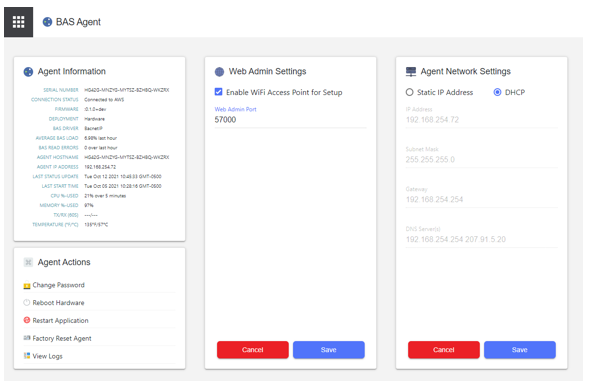 Connect to the BAS Agent’s Wi-Fi network to investigate why Agent will not connect to AWS.