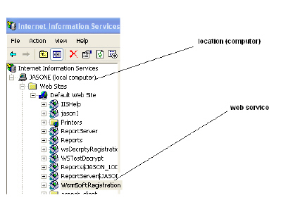 Next, go back into IIS and make sure the WSRegistration web service appears under the correct location (in our example, JASONE).