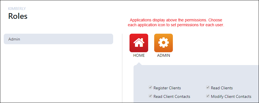 - Mark the permissions to assign to the Role. If you have additional applications with permissions to assign to this Role, you can set those at this time or you can set those up later.