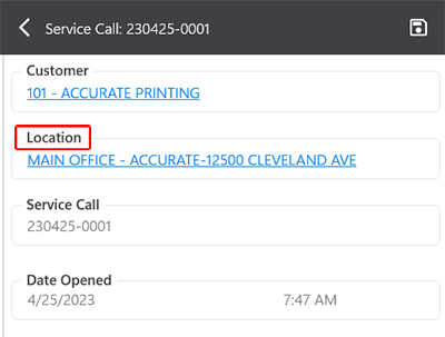 | MT-700 | A CreateNewCallForBillOnlyLocations setup option has been added to the Service Call Settings section in MobileTech Admin Setup Options. This is a new setup option that, when set to True, allows technicians to create new service calls for locations marked as Bill Only in Service Management. Additionally, the bill only customer locations have an indicator displayed next to the location name. The default value is False, which means the Bill Only locations do not appear in the lookups in MobileTech and technicians are not able to create new service calls for Bill Only locations. We have also added a new "isbillonly" field to the location table. See Service Call Settings. With this option set to True, the indicator is displayed next to the location name. ![]() |