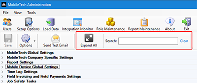 MT-775 | An AllPreviousWeekEntries setup option has been added to the Mobile Device Global Settings section in MobileTech Admin Setup Options. This new option provides the ability to limit technicians to entering time for the current week only. The default value is True. See Mobile Device Global Settings for more information.