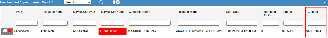 SCHED-1914 | In the Unscheduled grid, users can now see the appointment's Created date. |
