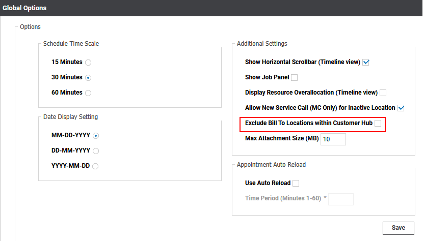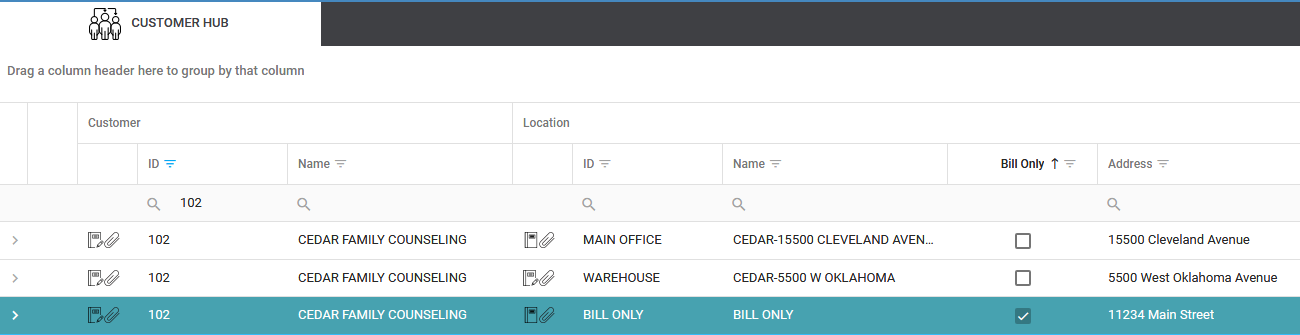 SCHED-1387 | Bill Only Locations can now be excluded from the Customer Hub. We've added two options that you can use. Locations can be marked as Bill Only in the Signature Location window. (Microsoft Dynamics GP > Cards > Sales > Customers > Location)