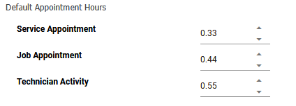 SCHED-1392 | You can now set a default value for estimated hours when creating a service appointment or service call, a job appointment, and a technician activity. The Default Appointment Hours option is set up in Schedule Settings. The value automatically populates when a zero-hour appointment is dragged to the schedule board and when using the Appointment Wizard after you select the appointment type. See Setting Up Schedule Configuration. |