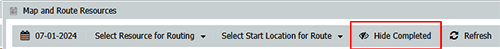 SCHED-1284 | In the Map View, users can now choose to conceal completed appointments. By default, this feature is set to show completed appointments. To hide completed appointments, click Hide Completed. The button label changes to Show Completed when the completed appointments are hidden. You can add the completed appointments back by selecting Show Completed. See Viewing Appointments on the Map. |