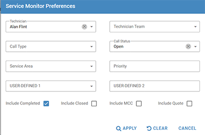 SCHED-1912 | A Service Monitor window has been added that works with service level agreements (SLAs) and visually displays service call data by the icon for the call type. The associated service call can be accessed by right-clicking the appointment and selecting Open Service Call in the Service Monitor window. Use the Service Monitor Preferences window to restrict the information displayed in the Service Monitor window. If you don't make any entries in the Preferences window, all service calls with appointments scheduled for the current day display. Your selections in the Filter Preferences window serve as defaults each time you open the window; only appointments that fall within those filters display. |