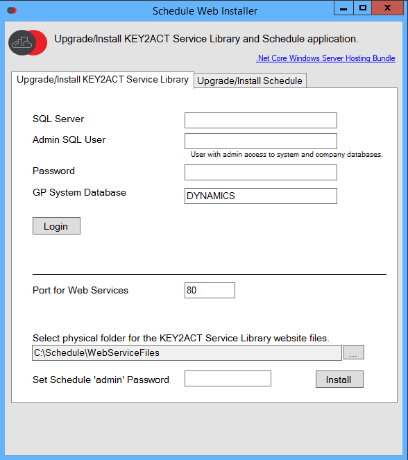 Prior to installing the K2A Service Library and application, the Schedule installation requires directories and files to be placed on your server.