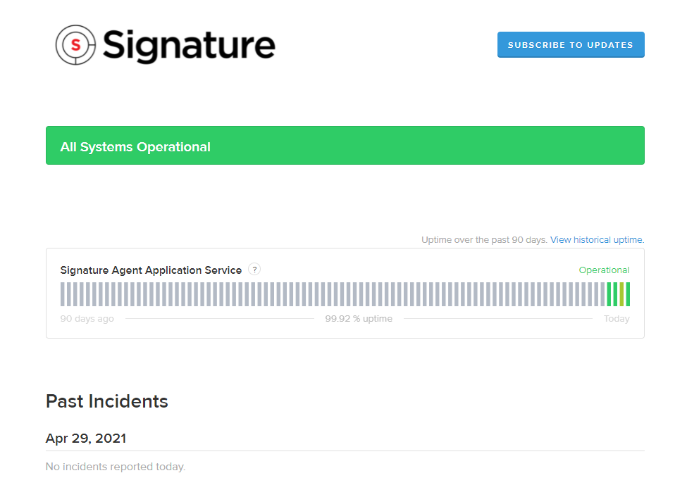 2. Select Signature Status to open a browser to https://signature.statuspage.io/.