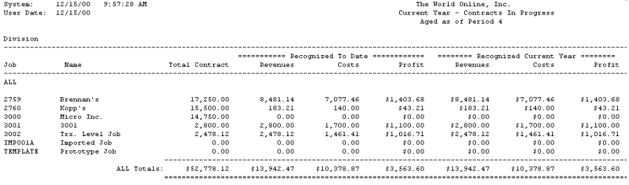 1. Select Reports > Job Cost > Job Reports > Current Year - Contracts in Progress.